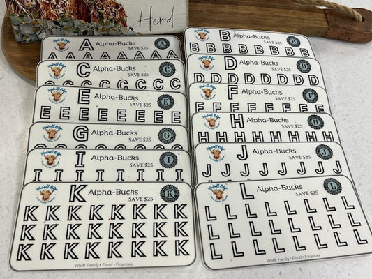 Alpha Bucks $1 Bill Saving Challenge Trackers for A6 Budget Binder